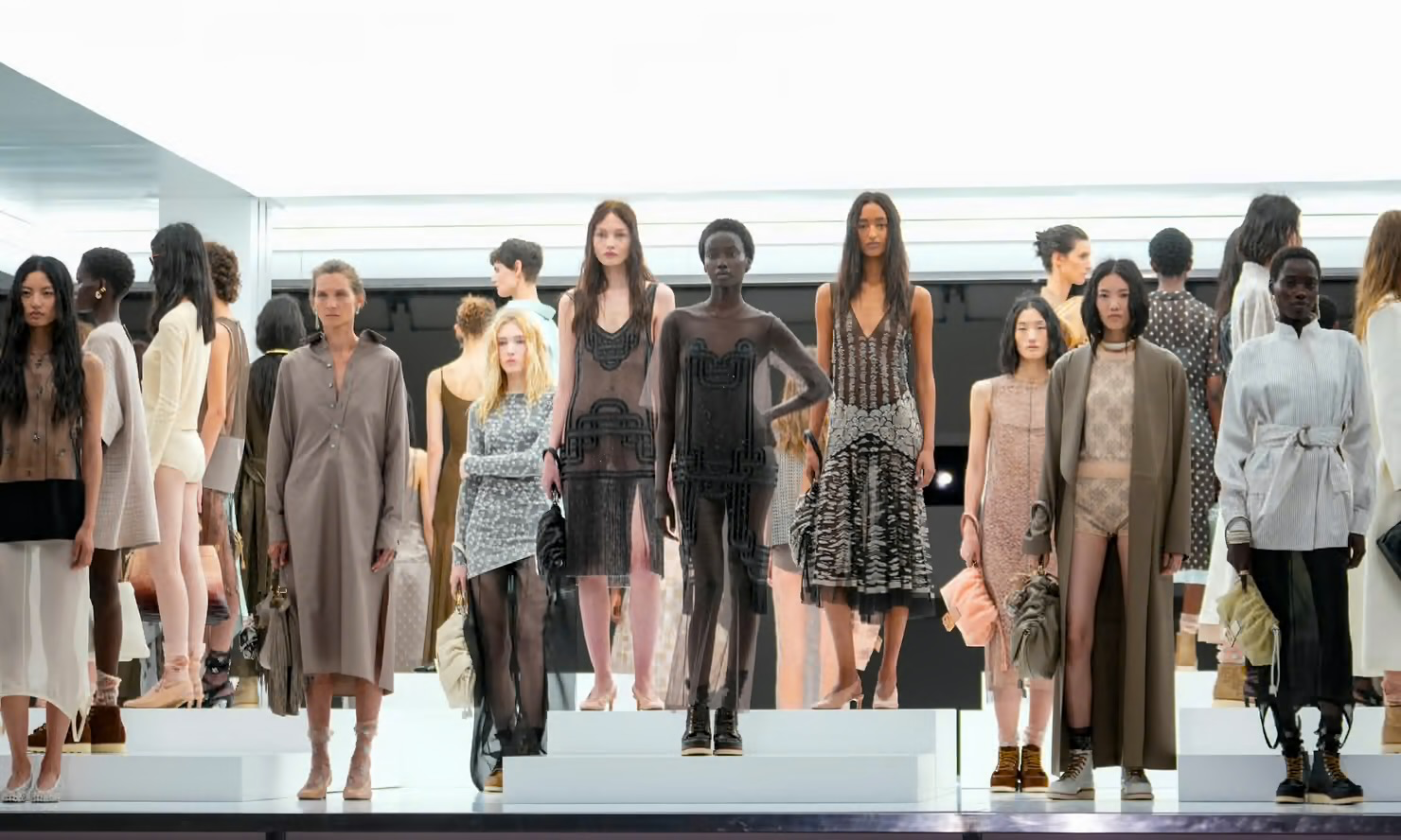 Kim Jone’s collection drew from Fendi’s archives and paid homage to Roman roots, blending utilitarian and extravagant styles. His focus on workwear inspired chic resonated with the modern working woman while keeping luxury at the forefront. All while celebrating 100 years of great success within the fashion industry.