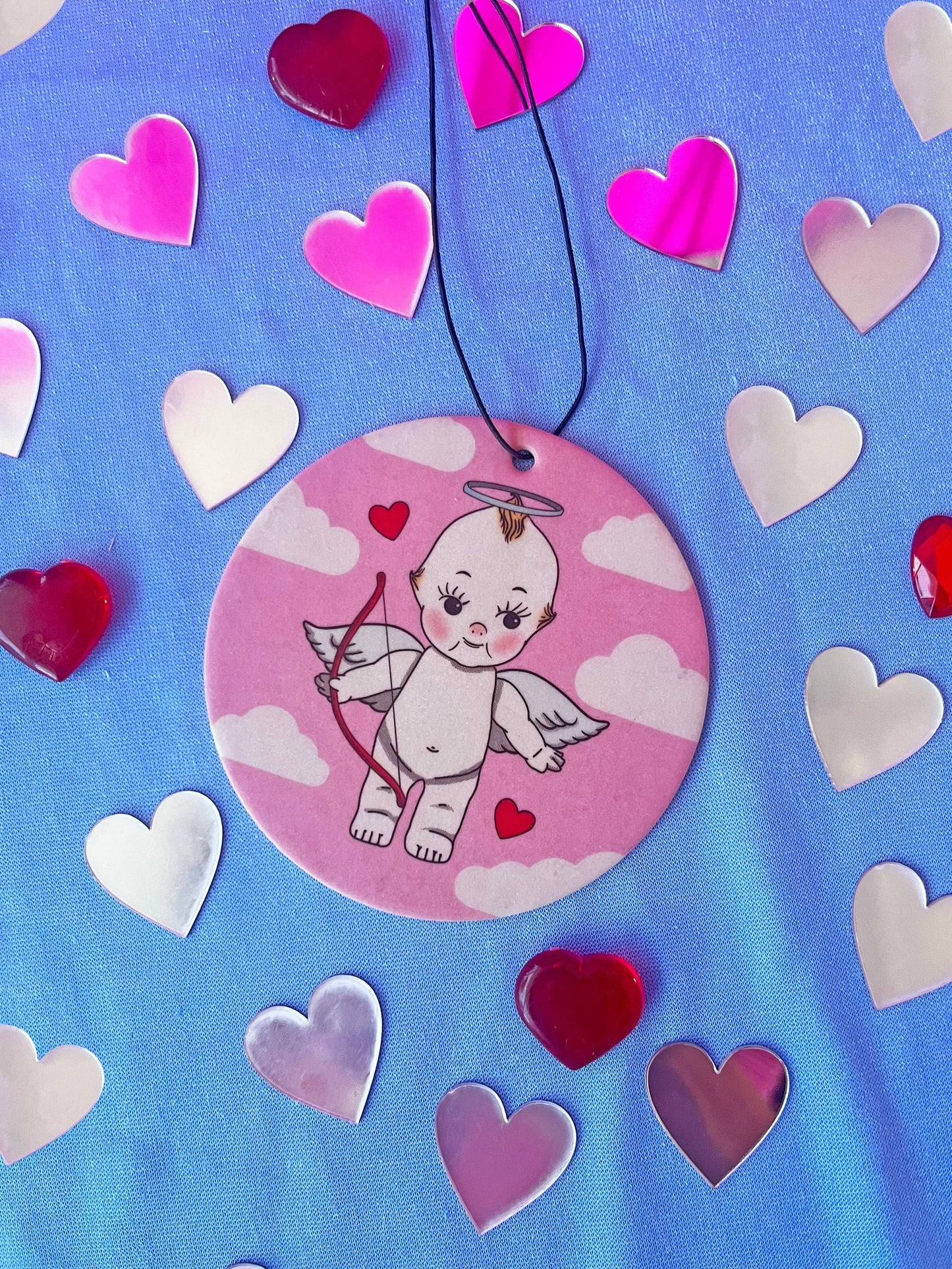 I'm just a baby angel/devil! This air freshener is unique in that both sides are a different kewpie design! One for each of your personalities.